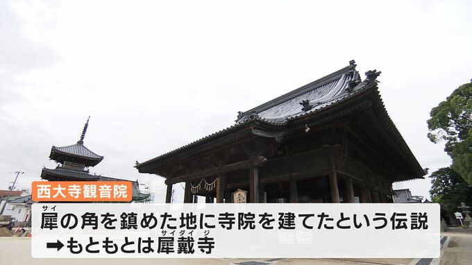 西大寺は、竜神から授かった動物の犀(さい)の角を鎮めた地に寺院を建てたという伝説から、元々犀戴寺(さいだいじ)だったといわれています。