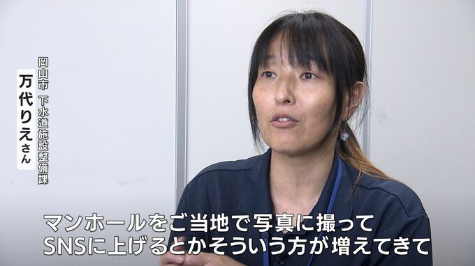 (岡山市下水道施設整備課 万代りえさん)「マンホールをご当地で撮ってSNSに上げるとかそういう方が増えてきて、マンホーラーと世間では呼ばれていますけど」