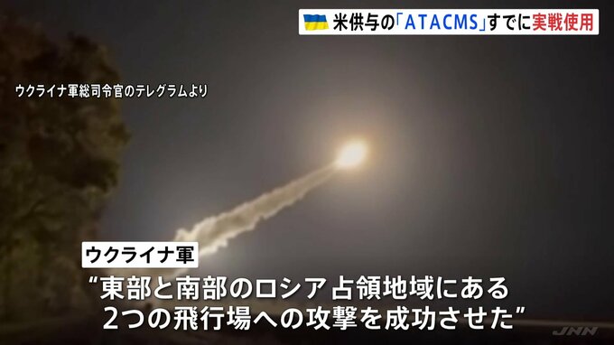 アメリカによるウクライナへの新たな軍事支援として焦点となっていた長距離ミサイル「ATACMS」が、すでに供与され使われ始めたことが明らかになりました。アメリカ国防総省の当局者は17日、JNNの取材に対し、射程16…