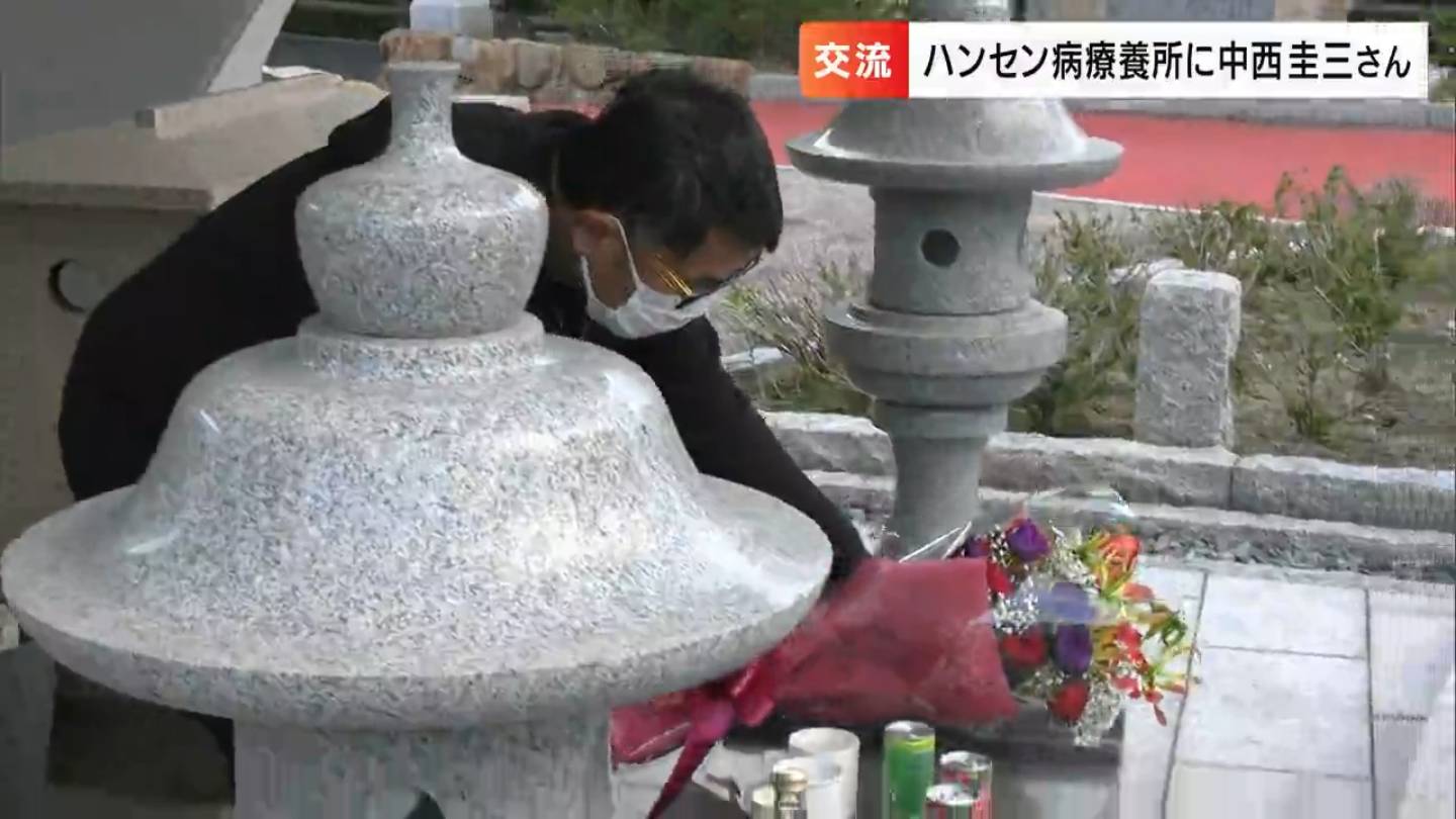 中西さんがハンセン病療養所を訪れるのは、今回が初めてだといいます。強制隔離政策の歴史を伝える資料を見学したあと、納骨堂に献花しました。
