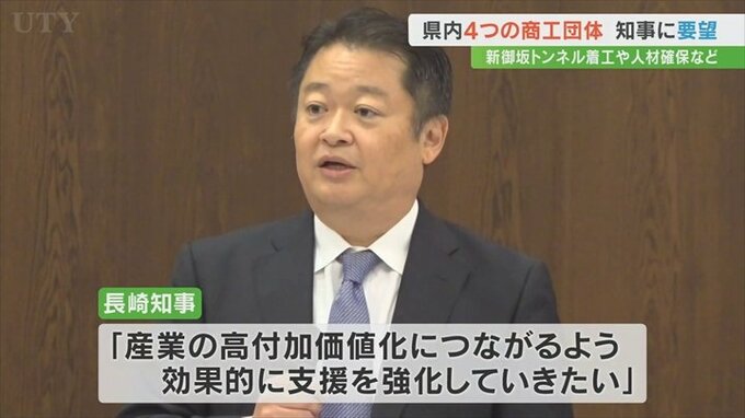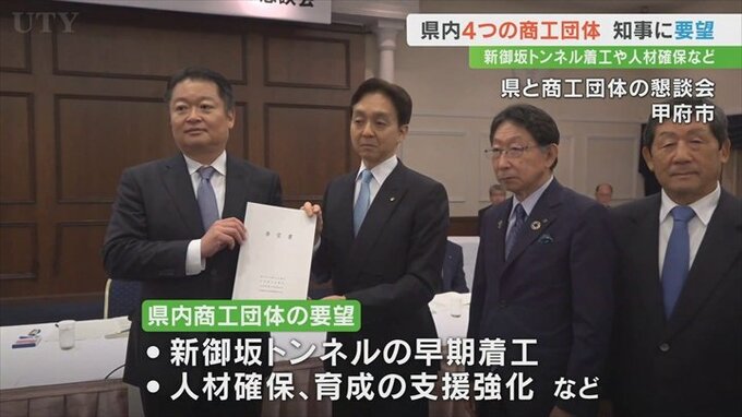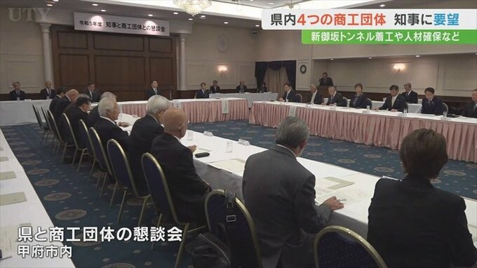 コロナ禍からの回復や人手不足などの課題に直面する山梨県内4つの商工団体が県に対し、新御坂トンネルの早期着工や人材の確保育成への支援を要望しました。
