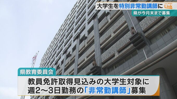 県教育委員会は当初、今年度中に教員免許を取得する大学生を対象に、週2日から3日、1日4時間ほど小学校や中学校の教壇に立つ『非常勤講師』を募集していました。