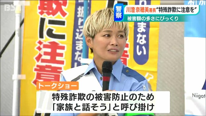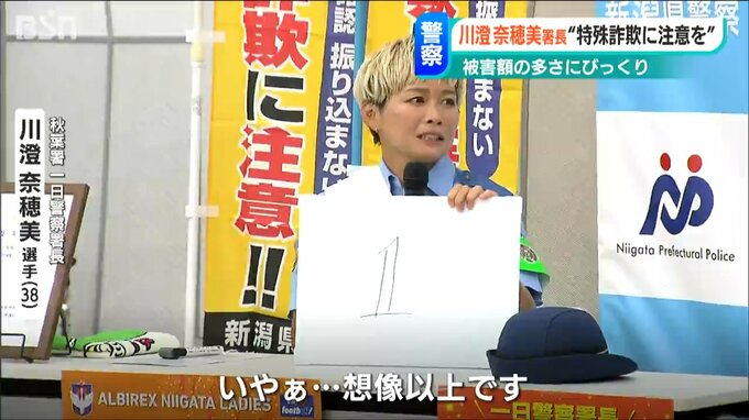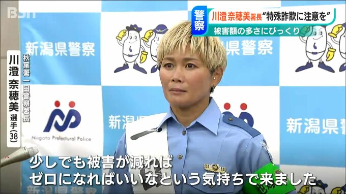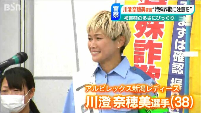 アルビレックス新潟レディースの川澄奈穂美 選手が、新潟県警・秋葉警察署の「一日署長」に就任し、特殊詐欺への注意を呼び掛けました。