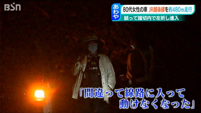 新潟市西区のJR越後線で17日夜、軽乗用車が誤って線路に進入し、480メートルほど走って動けなくなりました。時折、火花を出しながら走っていたという軽乗用車。運転していたのは80代の女性でした。