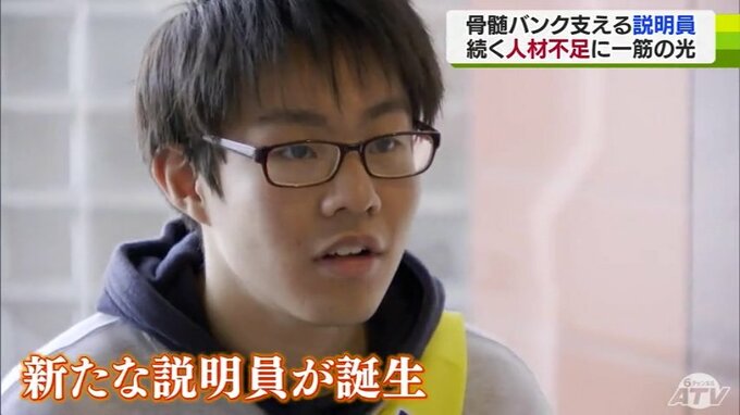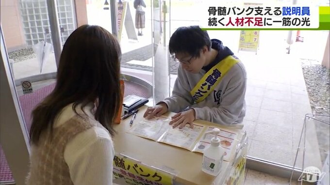 いまは同じサークルの中で説明員は安倍さんだけのため、興味を持つ仲間が増えてほしいと話します。そして今まで登録会に協力してきた赤十字血液センターにも支援の輪が広がり、職員の辻一生さんが10月に説明員になりました。