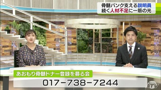 県内でドナー登録している人は9月末時点で1万262人です。登録できる人口1000人あたりでは全国で3番目に多くなっています。説明員と県民の方の協力でこうした状況ができています。説明員になりたい・興味があるという方は「あおもり骨髄ドナー登録を募る会」(017-738-7244)まで問い合わせください。