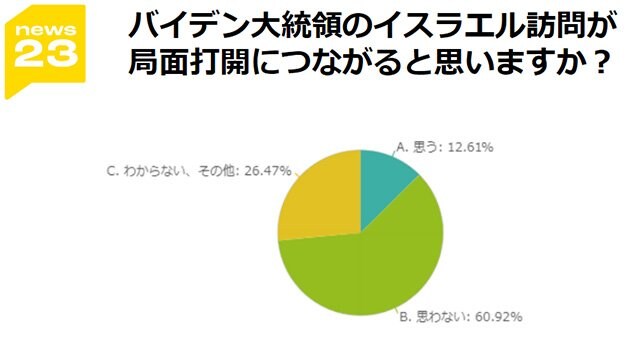 ▽緊張が続くガザ情勢。バイデン大統領のイスラエル訪問が局面打開につながるかということについて、「思う」と回答した人は1割強にとどまりました。
