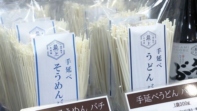 会場には、日本一の生産量を誇る手延べ麺など、浅口市と里庄町の特産品約125種類が並んでいます。