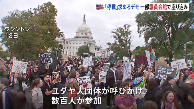 アメリカ・ワシントンの連邦議会前で、イスラエルとイスラム組織ハマスの間の停戦を求めるデモが行われ、一部が議会の建物内で座り込みを行い、逮捕者も出ました。「今すぐ停戦を!」ユダヤ人団体の呼びかけで、ワ…