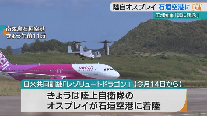 14日から始まっている陸上自衛隊とアメリカ海兵隊の共同訓練で、19日、県内では初めて自衛隊のオスプレイが新石垣空港を使い訓練を行いました。市民団体は抗議の声を上げています。