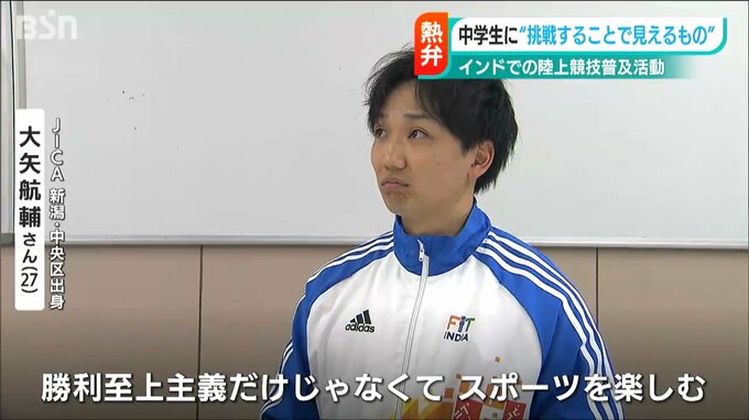 途上国を中心にボランティアを行うJICA=国際協力機構の海外協力隊員で新潟市中央区出身の大矢航輔さん 27歳です。中学時代に110メートルハードルで全国3位になるなど活躍した大矢さんは「陸上競技のコーチ」としてインドに赴任。
