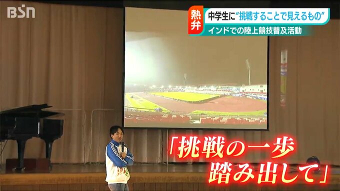その活動と経験を中学生に熱弁しました。赴任先のインドでは来年のパリオリンピック出場選手を育てることが目標でした。