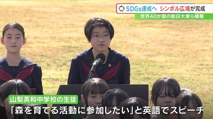 SDGs達成に向けたシンボルとなる広場が、山梨県鳴沢村に完成しました。