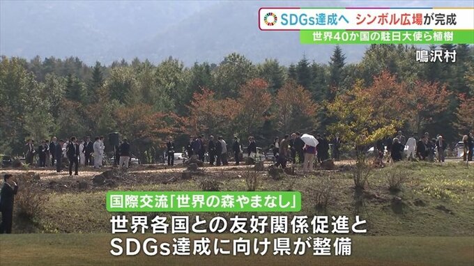 県が整備したもので、世界40か国の駐日大使らが記念の植樹を行いました。