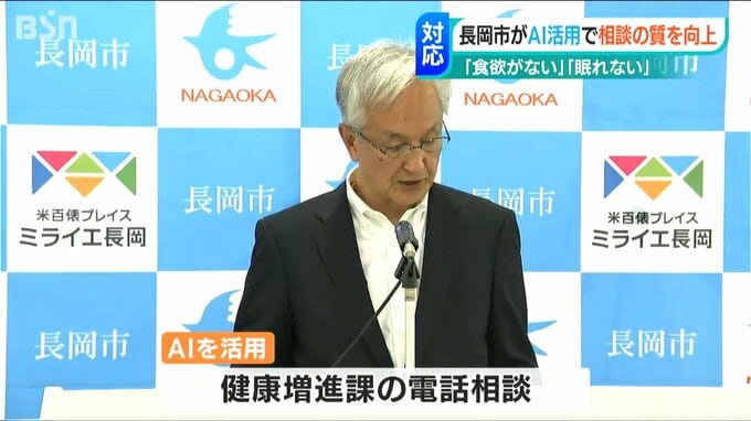 19日の長岡市の定例会見で、磯田達伸 市長が明らかにしました。AIを活用するのは、健康増進課が行う市民からの電話相談です。