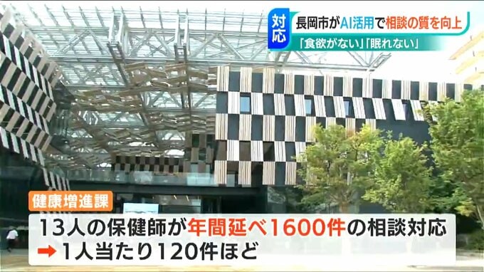 長岡市によりますと、健康増進課では13人の保健師が年間のべ1600件ほどの相談に対応しています。これは1人当たり120件ほどに上ります。