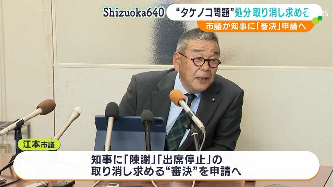 静岡県沼津市議会で9月「市の土地からタケノコを採って販売している」と発言し、懲罰が科された市議会議員が、静岡県知事に対して処分の取り消しを求める審決の申請をすると明らかにしました。