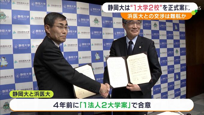 静岡大学と浜松医科大学の統合・再編問題について、静岡大学は10月18日、4年前に結んだ合意とは異なる「1大学2校」を正式な案にすることを決めました。しかし、浜松側からの反対意見は根強く、今後の協議の行方は依然として不透明です。