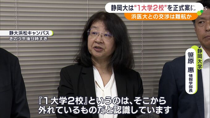 「わたしたちは合意事項というのは『2つの大学法人を統合して、静岡側・浜松側の大学をつくる』ということが合意事項の核になるものだと思っているので、『1大学2校』というのは、そこから外れているものだと認識しています」
