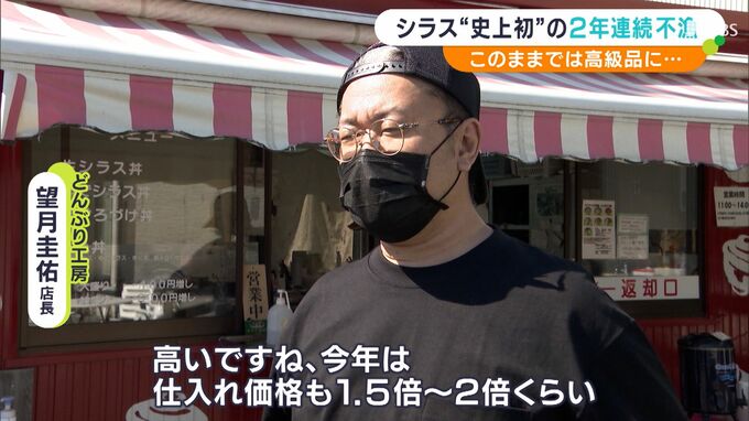 「高いですね、今年は。仕入れ価格も1.5倍から2倍くらい。あんまり高いとね、いくらシラスがおいしいといっても、お客さんの足も遠のいちゃうような気がするので(値上げせず)このまま頑張ろうかなと思っています」