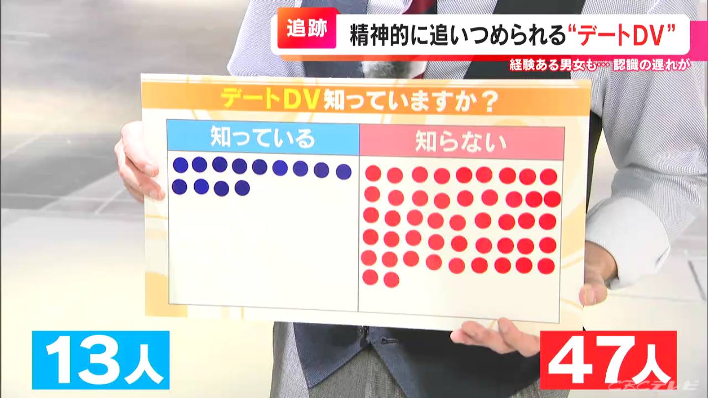 10代から60代まで60人に聞いたところ、「デートDV」を知っていたのは13人。5人に1人でしたが、体験したことがある人も少なくありませんでした。