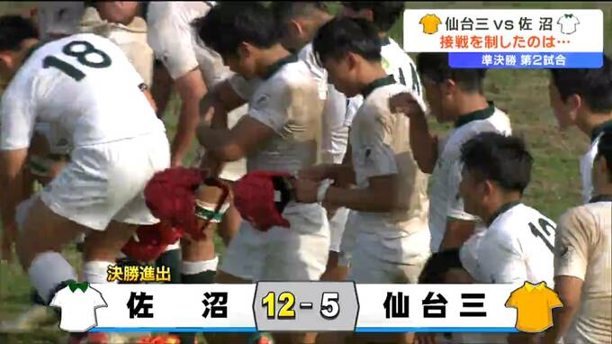 するとエンドが変わった後半3分、佐沼が再び反撃。限られたチャンスを生かしリードを広げた佐沼。しぶとく粘りのラグビーでロースコアの戦いを制し2年連続の決勝進出です。