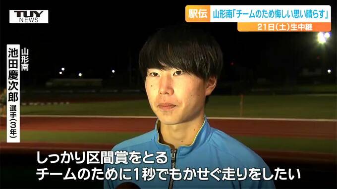 山形南 池田慶次郎 選手(3年):「悔しい思いは1年間ずっと持っていたし、その思いを今年、晴らしたいと思って出場を決めた。しっかり区間賞をとることと、チームのために1秒でもかせぐ走りをしたい」