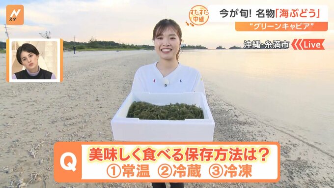 『歩いて発見!すたすた中継』です。きょうは「グリーンキャビア」とも呼ばれる沖縄名物「海ぶどう」の話題をRBC琉球放送の今野成美リポーターがお伝えします。