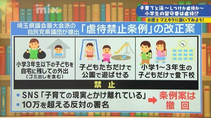 埼玉県での「虐待禁止条例案」が話題になりました。議論の的となったのが、小学3年生以下の子供を家に留守番させるのが虐待にあたるのか、という点です。