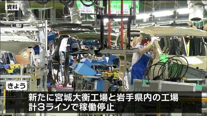 19日の時点では、全国6つの工場の10のラインで稼働を停止していて、20日新たに宮城大衡工場と岩手県内の工場の合わせて3つのラインで稼働を停止しています。