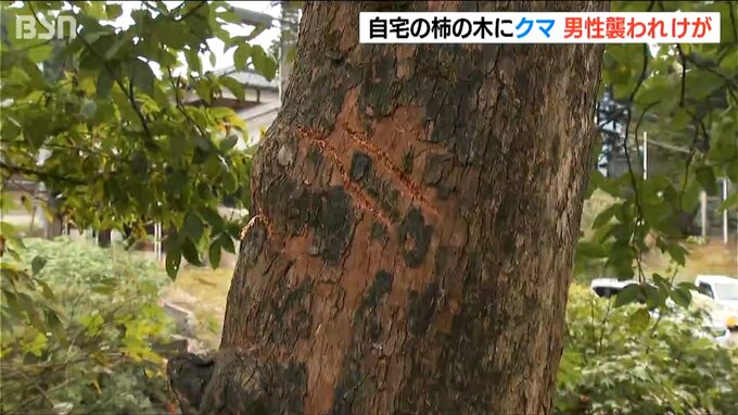 新潟県阿賀町新谷で19日午後9時45分ごろ、60代の男性が買い物から帰宅したところ、自宅敷地内の柿の木に登っていたクマ1頭に襲われ、顔や腕をひっかかれてけがをしました。男性は近くの家に駆け込み、その家の住人が消防に通報しました。