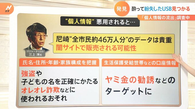 兵庫・尼崎市で全市民およそ46万人分の個人情報が入ったUSBメモリーが一時紛失した問題。USBメモリーの紛失から発見までの経緯と、個人情報が流出して悪用された場合の“被害の可能性”について解説していきます。…