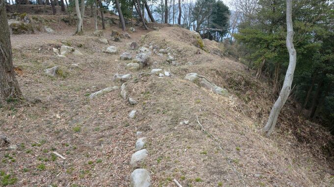 室町時代の国人・香西氏の拠点で、中世の山城に一般的に見られる連郭式の曲輪と、羽柴秀吉の四国攻めに備えて改修された、16世紀後半の城郭遺構の両方が見られます。