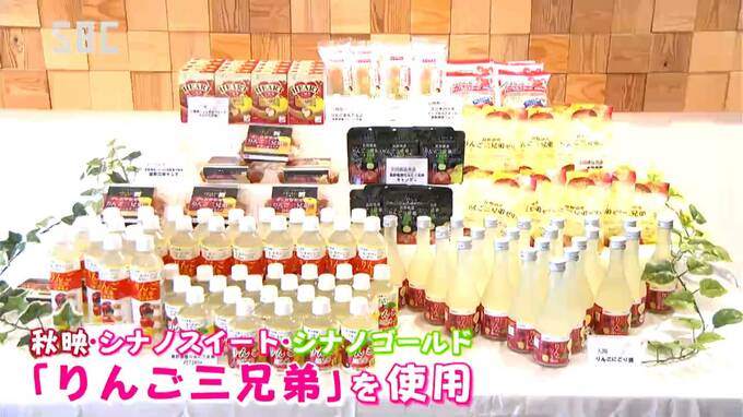 長野県オリジナルの3品種、「りんご三兄弟」を使った商品がお披露目されました。