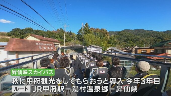 このバスは秋の行楽シーズンに甲府市を訪れてもらおうと導入され、3年目になります。