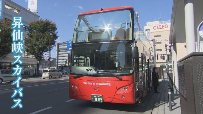 甲府の観光地を屋根がついていないオープントップバスで巡るツアーが今年も始まります。
