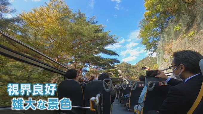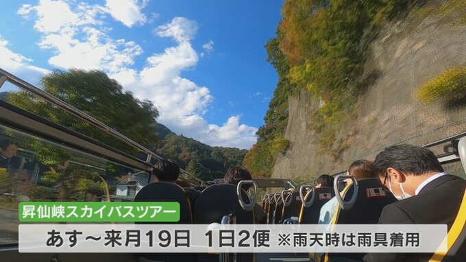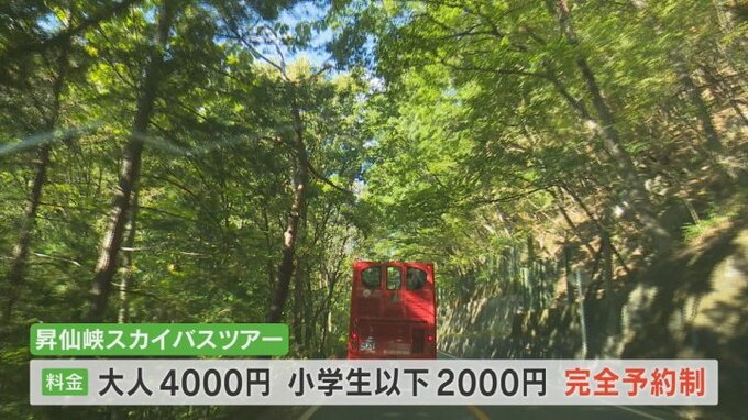 昇仙峡スカイバスは完全予約制で、料金は大人4000円、あす21日から11月19日までの30日間、1日2便運行されます。雨の場合は雨具を着て乗車するということです。