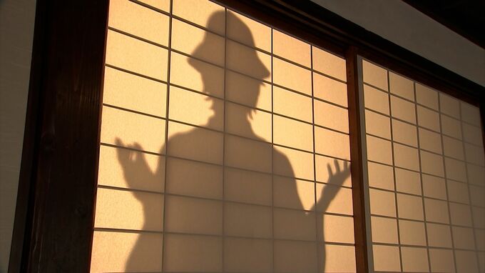 障子の向こうに映し出されるのは、お馴染みのシルエット。探偵・金田一耕助です。