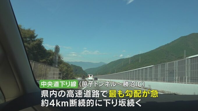ネクスコ中日本によりますと、事故が起きた区間は、県内の高速道路で最も勾配が急でおよそ4キロにわたって、断続的に下り坂が続く道だと言います。