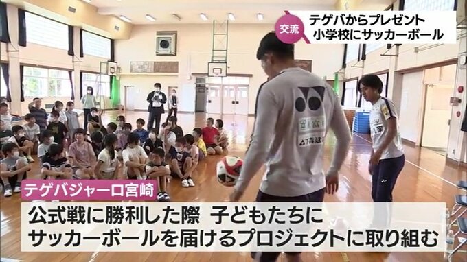 サッカーJ3、テゲバジャーロ宮崎の選手が、宮崎県新富町の小学校にサッカーボールを届けました。テゲバジャーロ宮崎は、公式戦に勝利した際、地域の子どもたちにサッカーボールを届けるプロジェクトに取り組んでい…