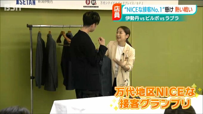 新潟市中心部の商業エリア、万代地区にある新潟伊勢丹、ビルボードプレイス、ラブラ万代。それぞれのプライドをかけたコンテストが開催されました。「ナイスな接客ナンバーワン」の称号を争う店員たちの熱い戦いで…