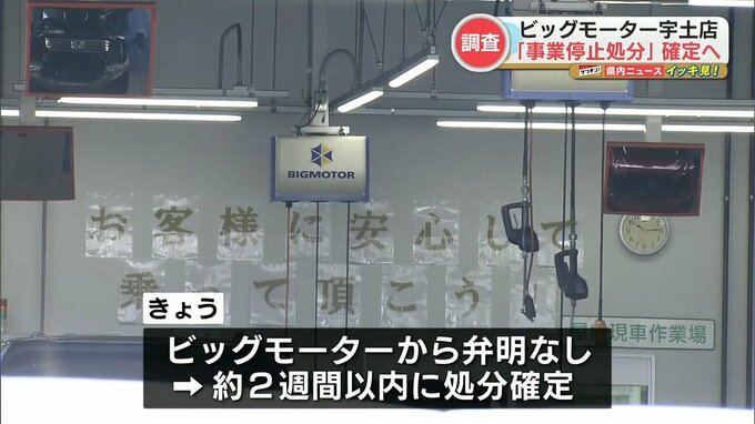 中古車販売大手ビッグモーターの熊本県内店舗への事業停止処分が確定します。
