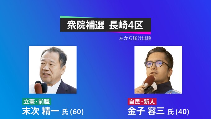 現職議員の死去に伴う衆議院長崎4区の補欠選挙は、比例区の前職と新人の2人による与野党一騎打ちとなっており、岸田総理の今後の解散戦略にも影響を及ぼす選挙として全国の注目を集めています。