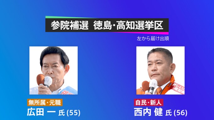 秘書への暴行問題で前の議員が辞職したことに伴う参議院徳島・高知選挙区の補欠選挙が告示され、元職と新人の2人が立候補しました。事実上の与野党一騎打ちの構図となっています。