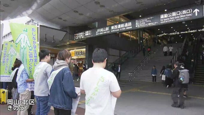 病気や事故などで親を亡くした子どもたちの進学を支援する募金活動が、岡山市北区で行われています。