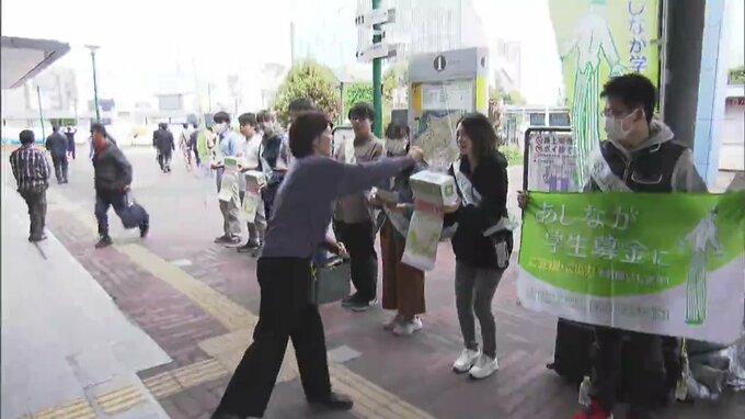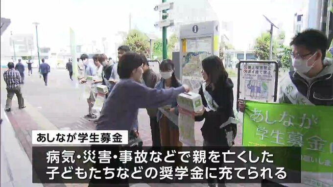 「あしなが学生募金」は病気や事故などで親を亡くすなどした子どもたちの奨学金を募るもので、実際に奨学金を受けている学生らが街頭で募金を呼びかけました。