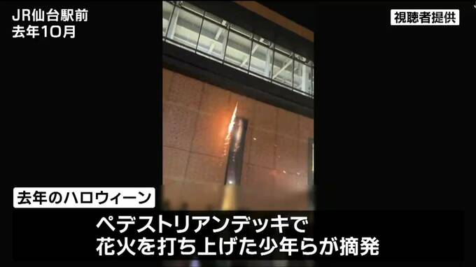 去年のハロウィーンでは、ペデストリアンデッキで花火を打ち上げた少年らが摘発されています。