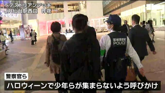 10月31日のハロウィーンで、仙台駅前に少年らが集まらないようにと、20日夜、警察による夜間補導が行われました。20日夜は、仙台駅西口のペデストリアンデッキなどを警察官ら11人が巡回し、ハロウィーンで仙台駅に…