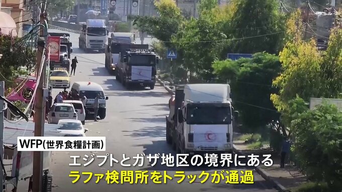 中東情勢です。パレスチナ自治区ガザの人道危機をめぐり、WFP=世界食糧計画は人道支援物資がガザに到着したと明らかにしました。WFPによりますと、21日、エジプトとガザ地区の境界にあるラファ検問所をトラックが…