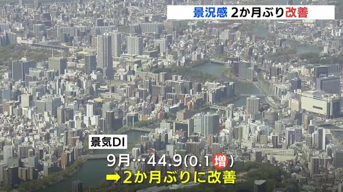 9月の景況感を示す指数=景気DIは44.9で、前月から0.1ポイント増え、2か月ぶりに改善しました。